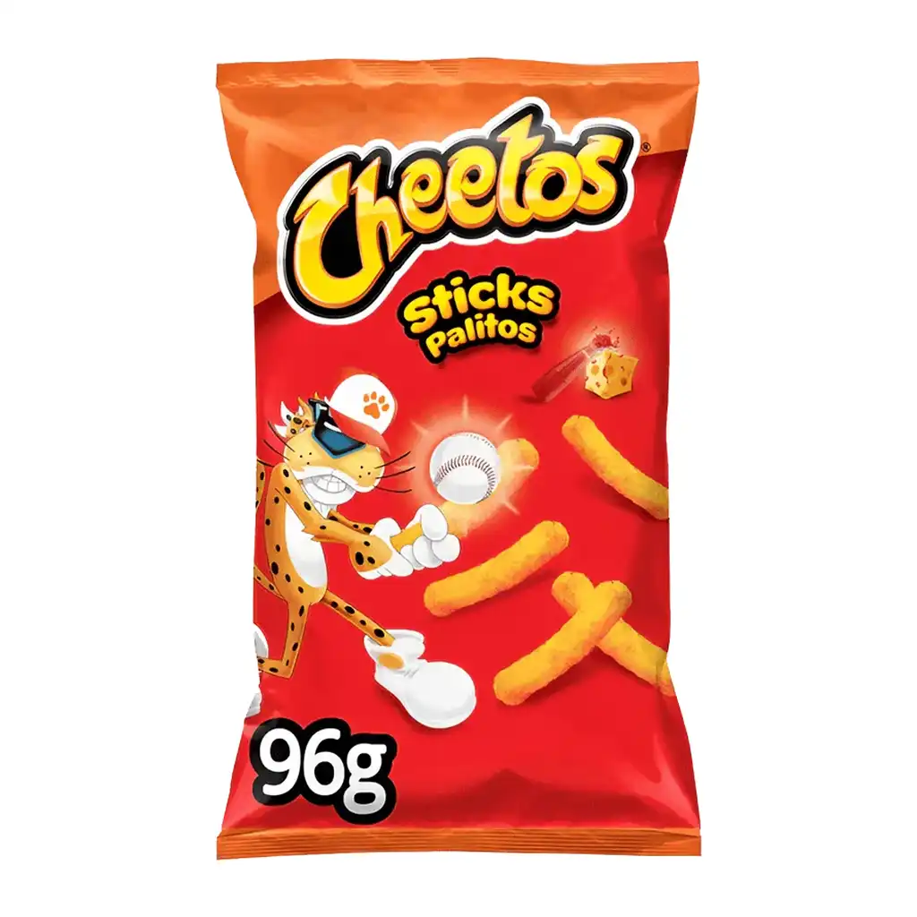 Cheetos sticks of 96g, crunchy cheese snacks in stick form, for those who enjoy crispy textures and cheesy flavors.