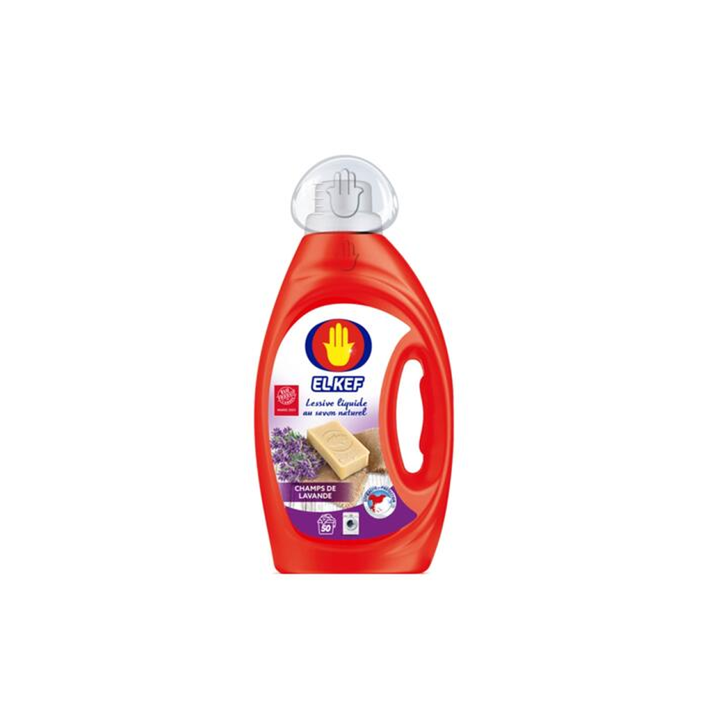 Propreté impeccable et tissus préservés. Lessive liquide El Kef 850 ml, pour lavage quotidien — parfum lavande frais et durable. Simple, efficace.
