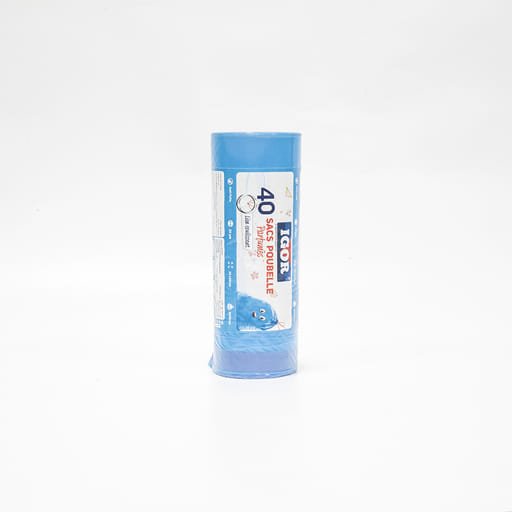 Résistants et pratiques 30 L, 40 sacs Igor. Idéaux cuisine et salle de bain, bleu visible, fermeture facile pour une poubelle propre et sans odeur.