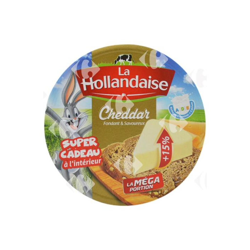 Fondant et savoureux: La Vache Qui Rit goût cheddar, 8 portions pratiques. À tartiner sur pain, crackers ou à fondre, texture onctueuse et goût riche.