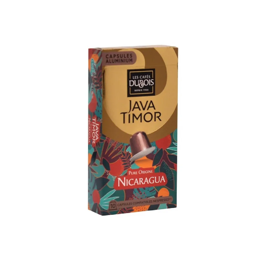 Les Cafés Dubois Java Timor, pure origine du Nicaragua, vous offrent une expérience caféine unique en 10 capsules.