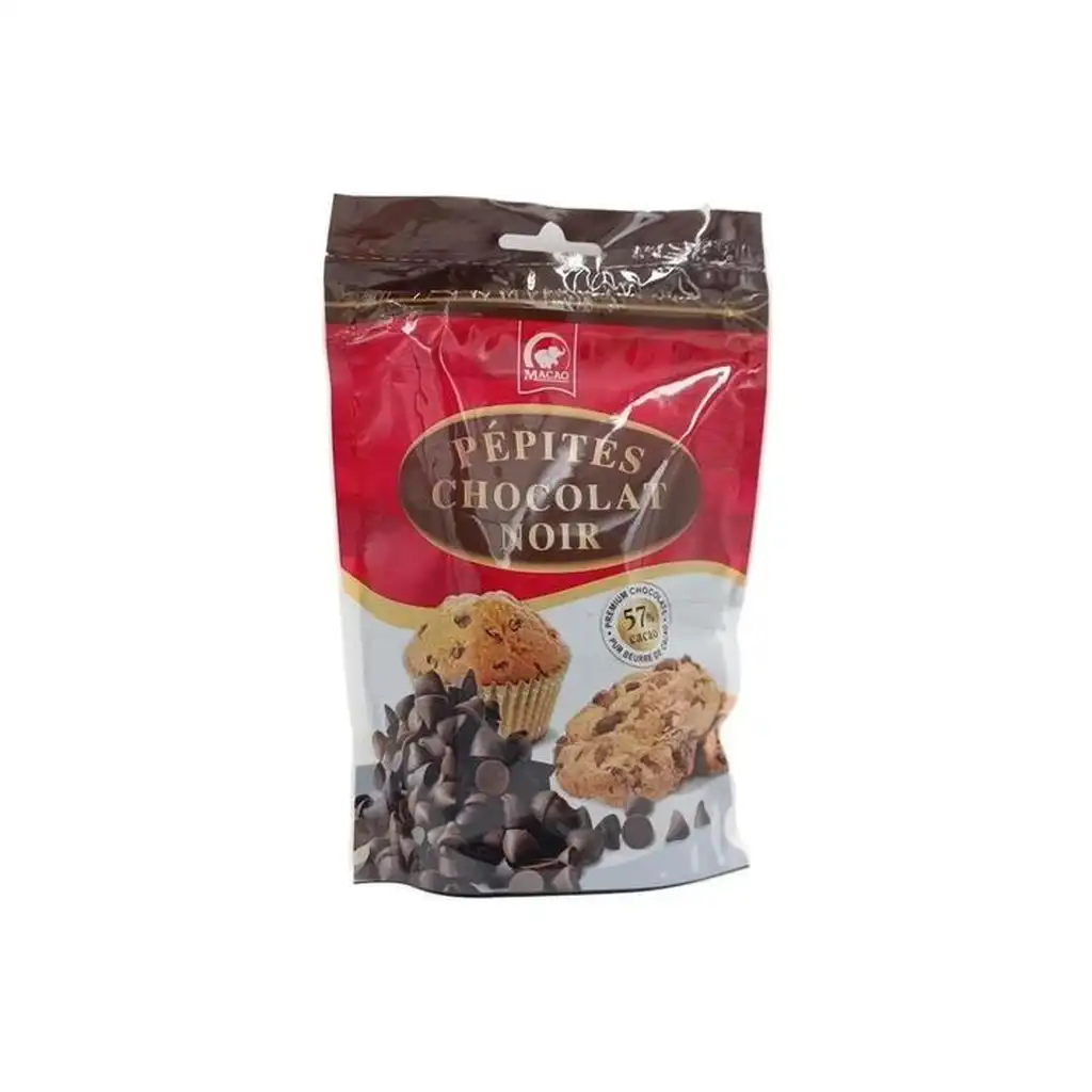 Chocolat noir intense, pépites 250 g — parfait pour nappages, ganaches et décors; fondant en bouche, apporte croquant et arômes puissants.