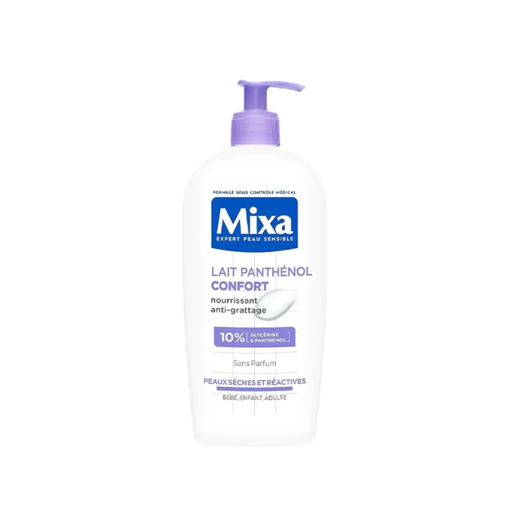 Hydratation réparatrice au panthénol pour peaux sensibles. S’applique après le bain, texture légère non grasse, pénètre vite et laisse la peau douce.