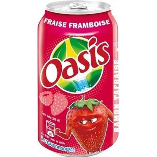 Rafraîchissez-vous avec la boisson oasis à la délicieuse saveur fraise-framboise en canette de 330 ml.