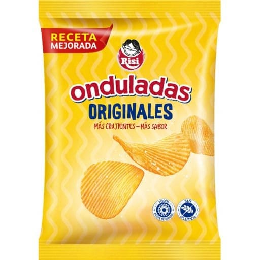 Sans gluten — Onduladas Originale 30 g: chips ondulées croustillantes, saveur originale, idéales à l’apéritif ou pour grignoter.