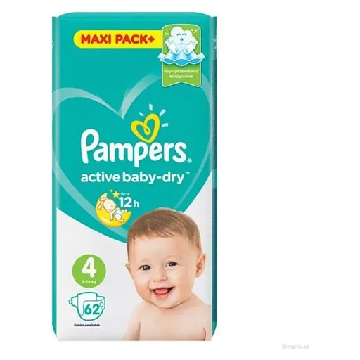 Protection longue durée et confort optimal. Absorption rapide, douceur pour la peau et coupe ajustée. Pampers Maxi N4, 62 unités.