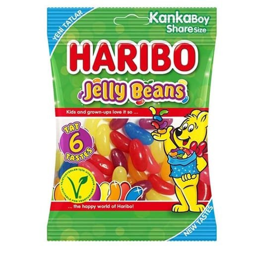Variété de saveurs fruitées, petit format pratique. À grignoter partout, fondants et colorés, parfaits en poche ou à partager. Haribo Jelly Beans 80 g