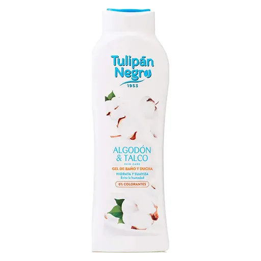 Nettoie et hydrate en douceur — gel douche Tulipán Negro Cotton 650 ml, parfum coton frais, mousse onctueuse pour une peau douce au quotidien.