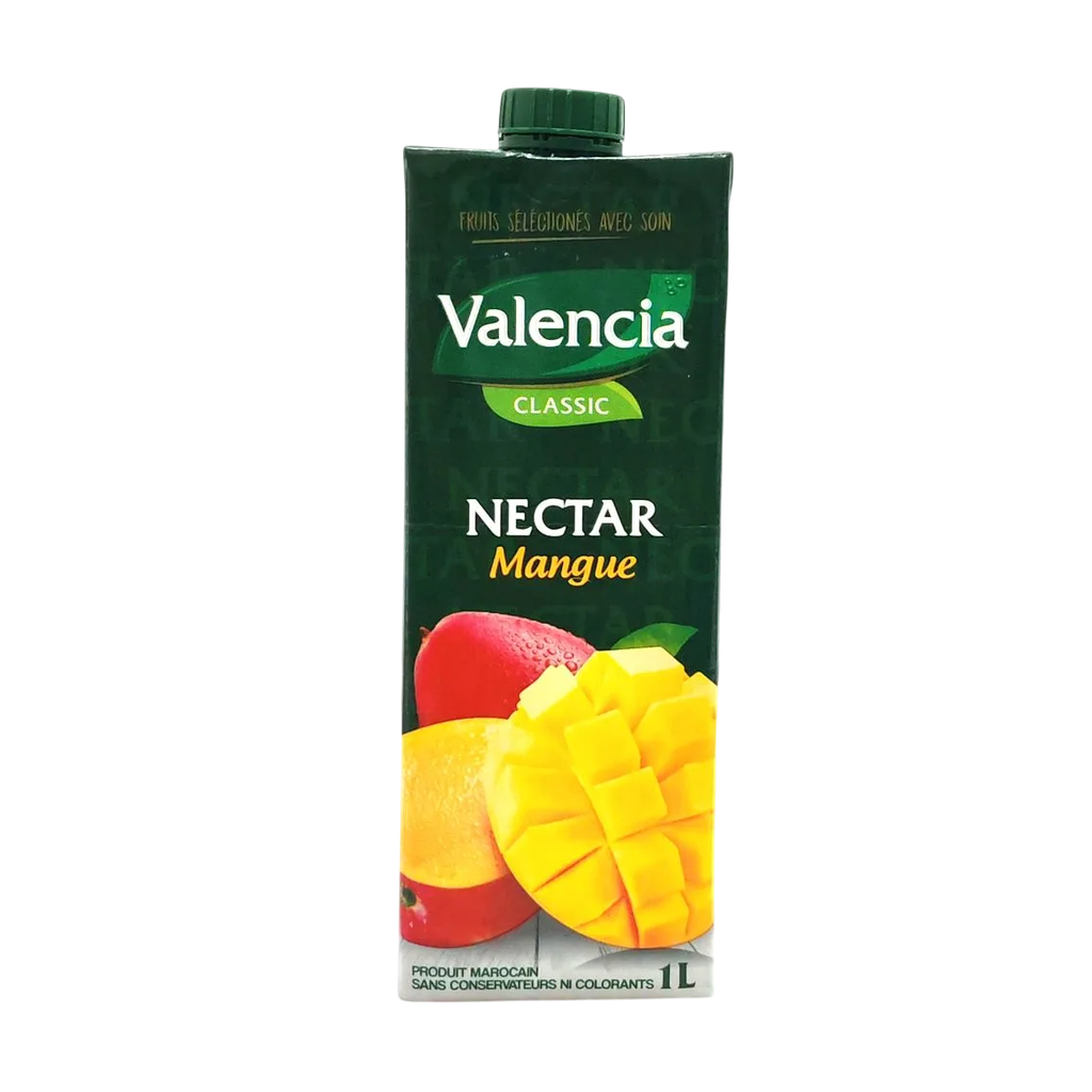 Onctueux et riche en pulpe: nectar de mangue Valencia 1L. Parfait au petit-déjeuner, en smoothie ou en cocktail, parfum sucré et fruité, format pratique pour toute la famille.