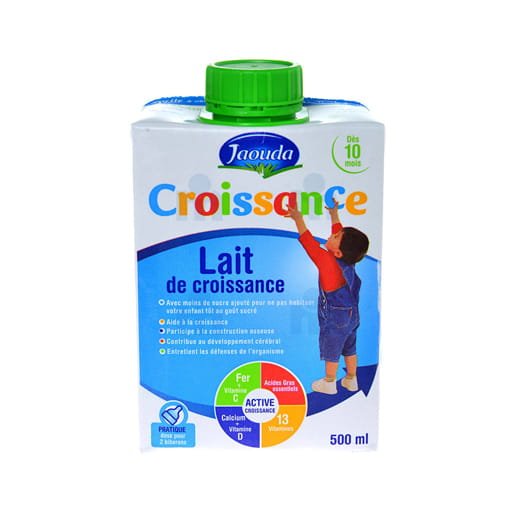 Le lait de croissance jaouda est spécialement formulé pour répondre aux besoins nutritionnels de votre enfant en pleine croissance. Ce bouteille de 0,5 l est idéale pour une utilisation quotidienne.